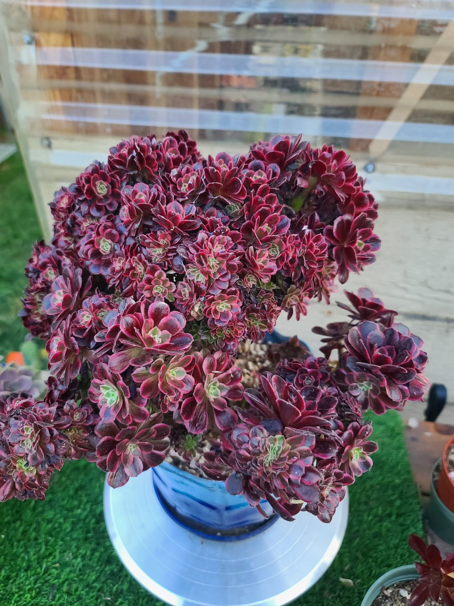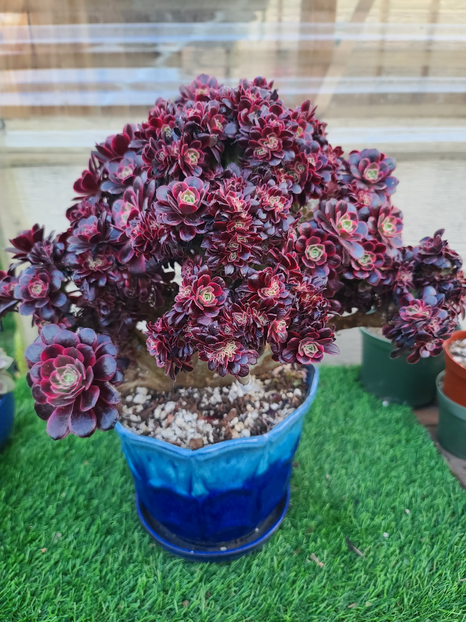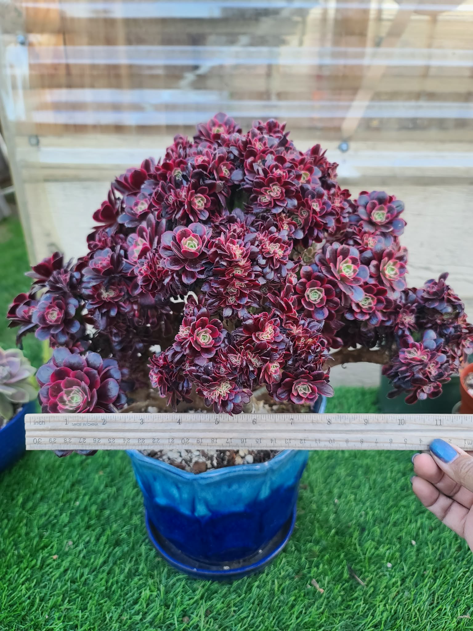 The Aeonium ‘Meiji’ Crested is a true masterpiece of the succulent world, offering a dramatic, fan-like growth habit that sets it apart from standard rosette varieties. This “crested” or fasciation form results in a stunning, coral-like ridge of tightly undulating stems, topped with a dense tapestry of miniature rosettes.