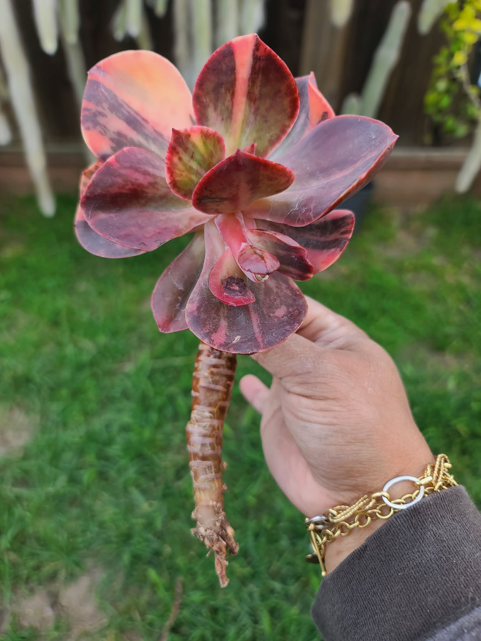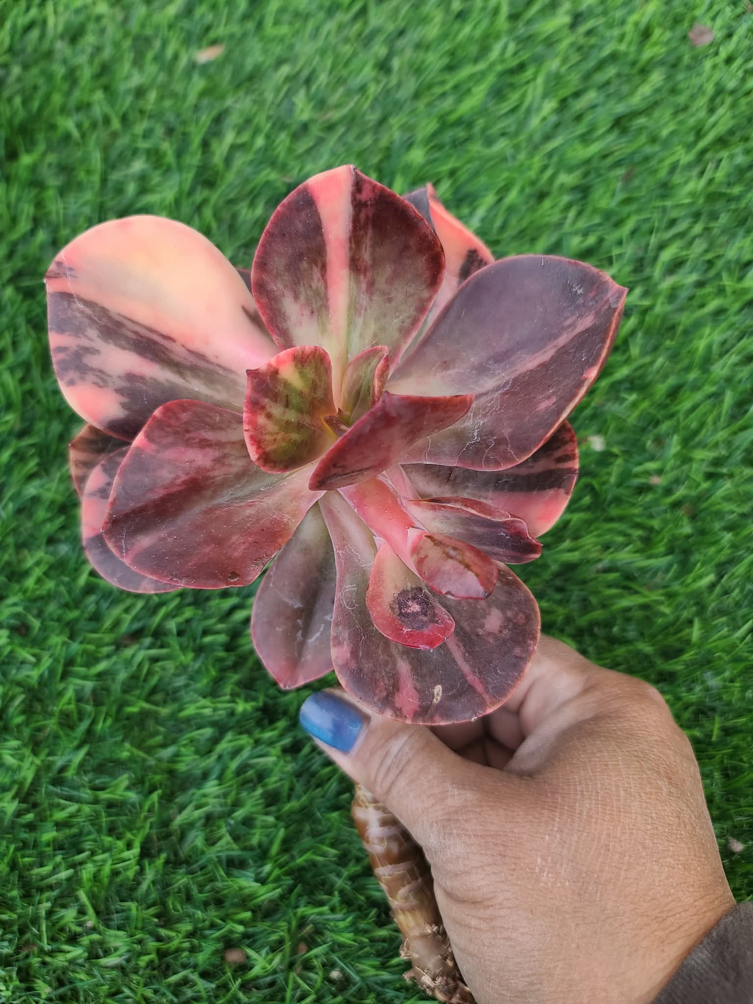 Its foliage is a soft silvery-blue to pale lavender, often coated in a thick layer of farina (a natural protective wax) that provides a matte, frosted finish. When “stressed” by sunlight or cooler temperatures, the ruffled edges blush with a delicate rosy pink or bright coral, making it a true focal point in any garden or indoor collection.