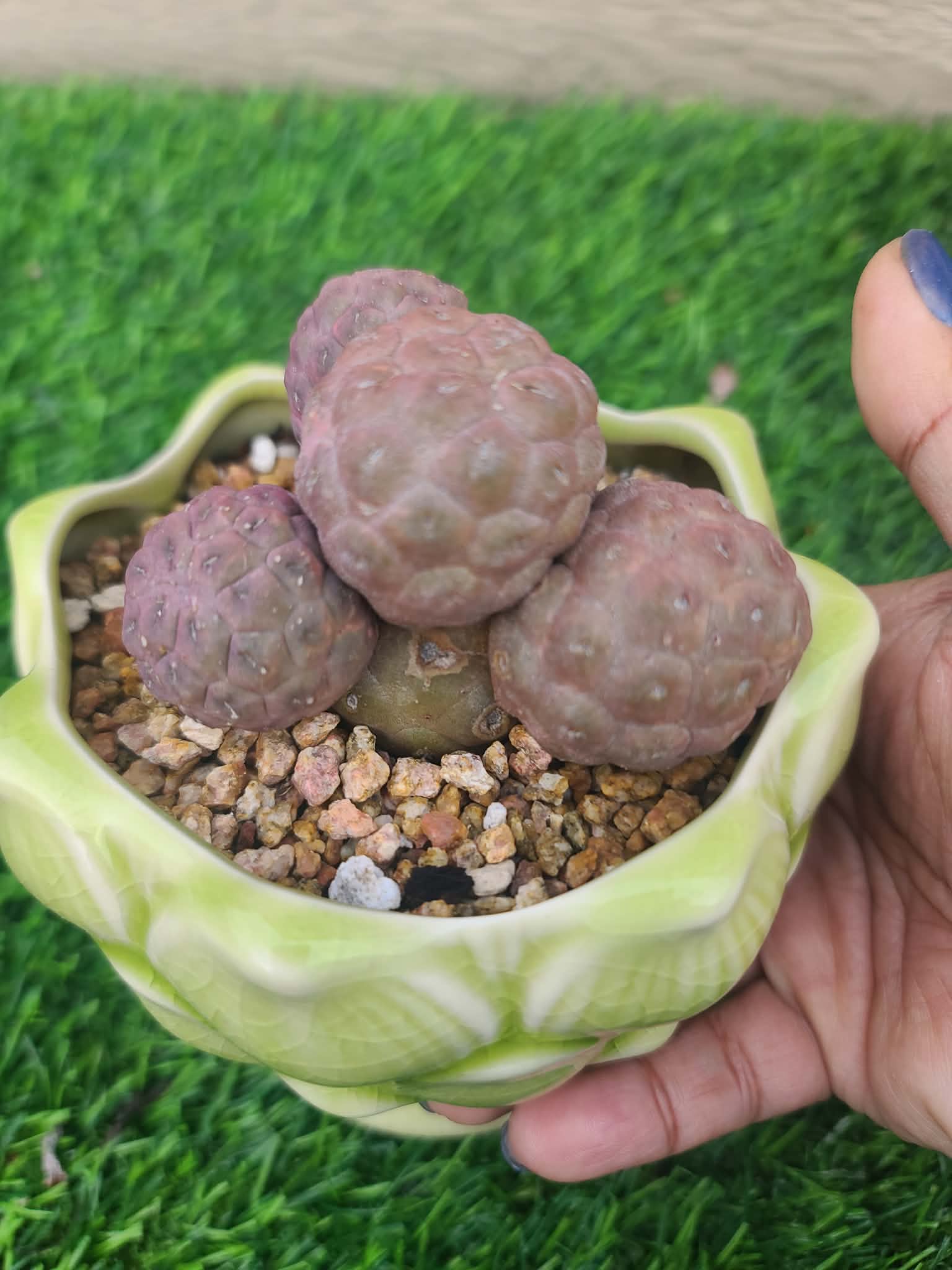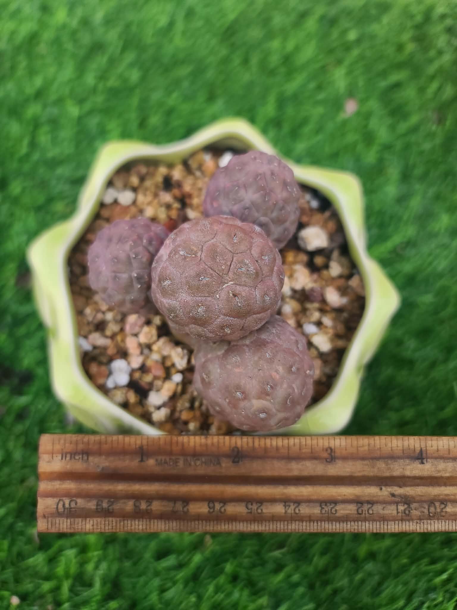 Meet the living sculpture,  a rare cactus made of perfectly rounded, geometric segments with a dreamy dusty purple hue. Each “ball” stacks like nature’s own art piece, giving it a bold, modern look that stands out in any collection. Slow-growing but incredibly unique, definitely a collector’s gem.